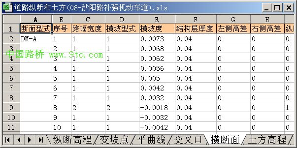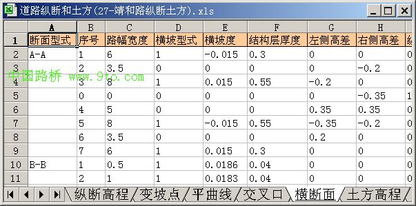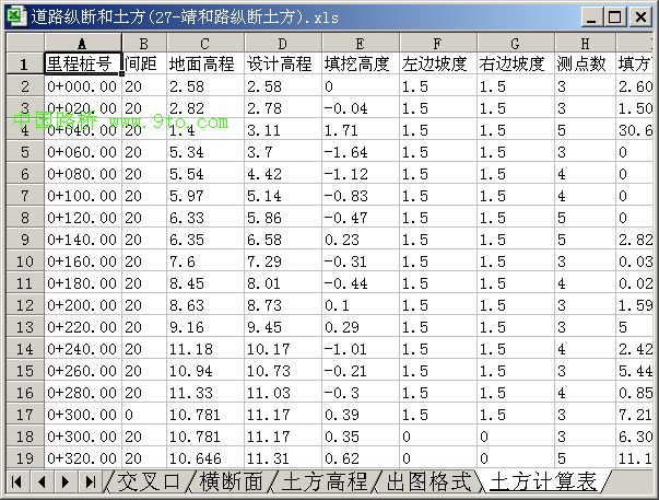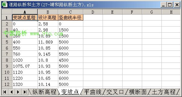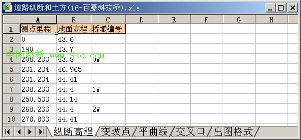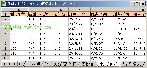 <IMG src=Excel编制数据文件,道路长度和桩号点数任意,测量结果直接记录于表中: