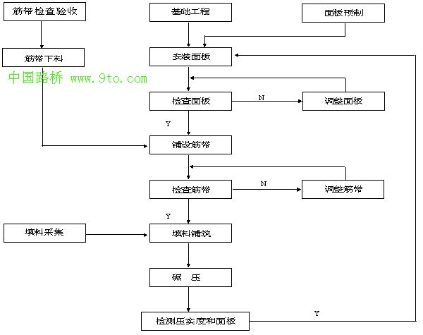 2.1加筋挡土墙的一般施工工艺流程图如下: