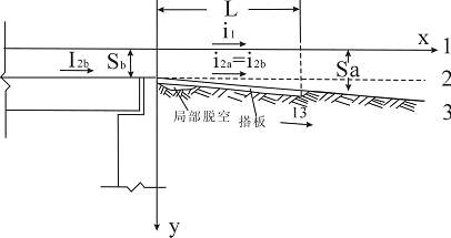 (2)桥头沉降过程中,搭板绕简支端转动,且可以被视为平直的刚体;