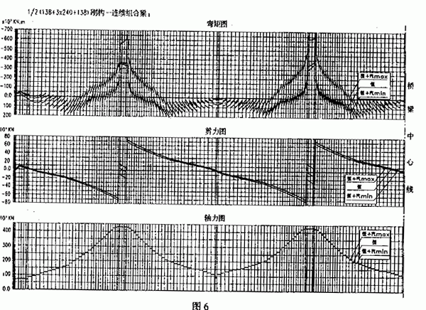 中主墩墩身内力:N,Q略有增大,M成桥状态增大9%,最不利组合增大8%;