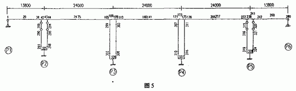 在本桥计算中,将P2,P5号墩与主梁间的支座连接约束用两端铰接刚性杆(А→∞,I→0)来处理,使计算图式归为全部刚结的形式。