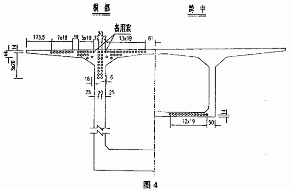 由于主梁受力状态同连续刚构相差不大,因此三向预应力设计基本相同。但由于施工过程中的配重措施,必然使得在各合龙阶段施工时,合龙段两端的高程会有所差值,这可以通过设置预拱度或采取加卸载措施进行施工挠度控制于以解决。另外,由于0号块同连续刚构相比,其边界条件有了变化,应作相应的空间有限元分析。