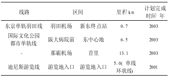 表2 日本建设中跨座式单轨铁路(2000年3月)
