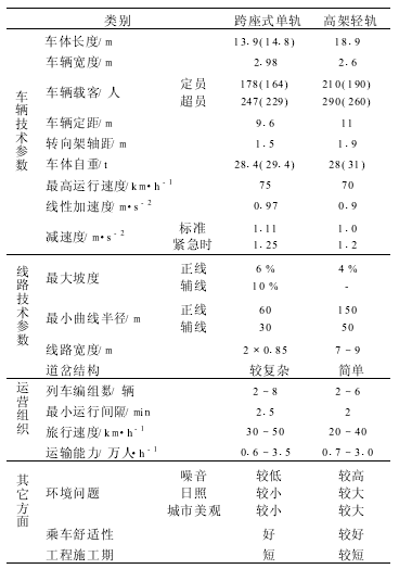 表3 跨座式单轨铁路与高架轻轨的性能比较[9]