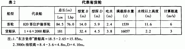 模拟计算的代表船型如表2。