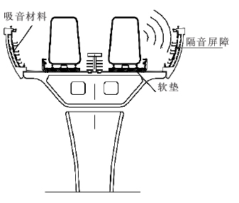 3.1.1车轮及轨道的噪音 是由车轮与车轨的摩擦及火车的推动系统所造成。3.1.2结构振动所发出的噪音 结构所散发的噪音是由列车行驶时桥梁结构的震动所产生的噪音。3.1.3空调噪音 空调噪音主要来自车厢上的空调及其发动机,并由空调本身的运作和设定规范控制,所以与高架桥结构的设计没有直接关系。3.2防噪减震措施 高架桥上的防噪,可以采用以下措施(见图2):