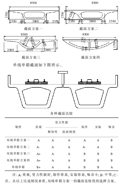 ①选择刚度大、自振频率低的闭合截面箱型梁结构; ②结构设计中,适当的优化截面,尽量使腹板支承在钢轨下部; ③敏感地段在桥上部两侧加设隔音屏障,内喷吸音材料; ④设浮置板道床,并在橡胶支承的底部加上软垫。4结束语 综上所述,高架的敷设方式已普遍地应用于我国的地铁建设中,它不但为市民的出行提供了极大的便利,也成为一个城市的主要标志和景观,如何保证桥梁的结构既安全又美观,就要求我们设计人员在设计的过程中根据周边环境选取合适的结构形式,并对受力进行严谨的计算分析;为了尽量降低地铁运营时对周边人群的干扰,我们还要采取一定的减噪措施,这样才能够为群众提供更好的服务。参考文献[1]程建耀.最新桥梁设计实用手册[M].长春:吉林电子出版社,2005.[2]邵旭东,程翔云.桥梁设计百问[M].北京:人民交通出版社,2003.[3]张树仁.桥梁设计规范学习与应用讲评[M].北京:人民交通出版社,2005.[3]范立础,李建中,王君杰.高架桥梁抗震设计[M].北京:人民交通出版社,2001.