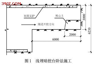 浅埋暗挖法地铁施工地表沉降的分析与研究 摘要:本文以在建的浅埋暗挖法施工的北京地铁五号线某标段的双线隧道为例,通过现场各实验断面实测数据的分析研究,得到在第四纪覆盖层,主要为粉质粘土的地质条件下隧道开挖过程中地表沉降、速率和拱顶沉降变化趋势。并指出在掌子面0.5D~0.75D范围内,地表沉降速率增长较大,施工中应在该范围内及时进行初期衬砌的支护。通过监测数据的统计分析,地表累计沉降主要发生在掌子面2D范围内,在此区域内地表变形速率较大,超出3D后,地表变形速率趋于平缓;沿隧道纵向地表沉降最大值超前发生于主断面。其影响最大的范围是在4D~4.5D的范围内。在施工中适时用小导管注浆法加固土体效果显著。分析结果对北京地铁后期建设和同类地层地铁施工环境控制具有重要借鉴和参考价值。 关键词:浅埋暗挖;地表沉降;拱顶沉降 目前国内许多大城市都在发展以地铁为主要干线的快速轨道运输系统,地铁对解决城市交通堵塞,改变城市布局,实现城市环境和交通综合治理,起到很大的作用。地铁所到之处楼宇兴旺、土地增值,推动了周边地区的经济发展,因此地铁有着越来越广阔的发展空间。随着地铁在城区松散土介质围岩条件下的大量修建,浅埋暗挖法[1]随之发展起来。该法借鉴了新奥法的某些理论,用于隧道埋深接近于隧道直径的各种尺寸与断面形式的隧道洞室修筑,施工起来不影响城市交通,无污染、无噪声。在地铁隧道施工中,浅埋暗挖法具有越来越广阔的发展前景。 地铁建设中,人们越来越关心地铁隧道施工对城市环境的影响,已有一些关于地铁施工引起既有临近城市地下管线、房屋基础及道路交通等不能正常使用的报道,因此,准确预测及现场量测反馈施工引起的地层变形及其影响范围对指导安全施工和设计十分重要[2]。 国内外对隧道开挖引起地层变形的研究有以Peck公式为代表的经验公式、工程类比法和数值分析法,目前国内同济大学对软土地层中的盾构施工引起的地层变形有一些研究[3],随着浅埋暗挖施工方法的兴起,其施工中地层变形和周边建(构)筑物的沉降也日益引起重视。地铁隧道施工中对现场环境的监测可以适当地调整施工工艺和设计参数,有效地指导地下工程施工,并且可以反分析隧道结构受力情况和地层变形规律。 本文通过北京地铁浅埋暗挖法施工所引起的地表沉降进行数据统计和分析,试图建立起评价地层变形对隧道结构稳定性影响的方法,为浅埋暗挖施工的环境控制提供相应的技术支持。 北京地铁五号线某标段浅埋暗挖法区间标准段穿越地坛南门广场,从既有道路下方穿过,道路交通流量较大。隧道埋深9~15 m,地质勘察报告表明,本区间处于第四纪覆盖层,隧道穿越粉质粘土,车站场区地层中赋存上层滞水、潜水和承压水。浅埋暗挖法区间标准段隧道单洞为马蹄形断面,复合式衬砌,覆土深度15 m,采用台阶法施工,上台阶施工时环形开挖留核心土,如图1。