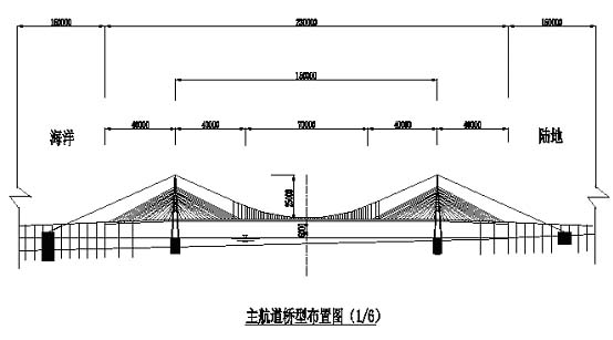 主通航孔桥梁的设置位置,在满足航道要求以后,应该尽量靠近岸边,以便将水中的锚碇设在较浅的海中,可减小施工难度。主通航孔桥梁的跨径为