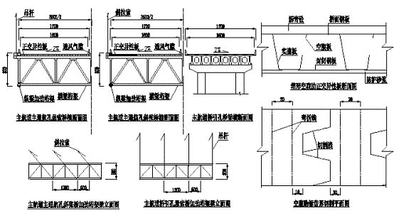 桥面板起到了上部水平风构的作用,下部水平风构采用型钢或钢管结构,也采用钢丝网水泥砂浆作长效防护。