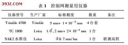 GPS点和施工控制网测量使用仪器见表1。