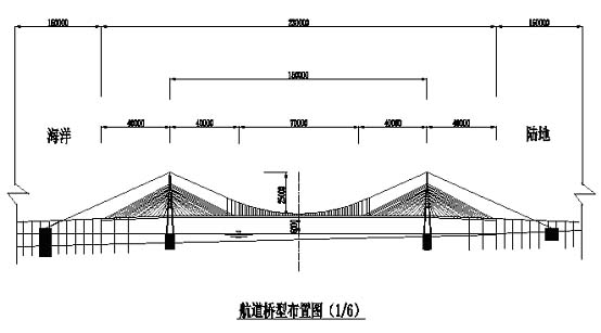 主通航孔桥梁的设置位置,在满足航道要求以后,应该尽量靠近岸边,以便将水中的锚碇设在较浅的海中,可减小施工难度。主通航孔桥梁的跨径为