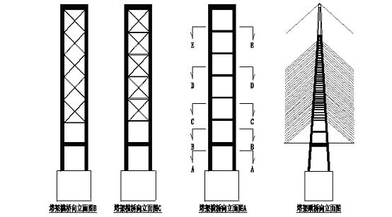 主航道桥的跨径很大,又为斜张桥和悬索桥的组合形式,塔架具有斜张桥弯矩大的特点。塔架高度达