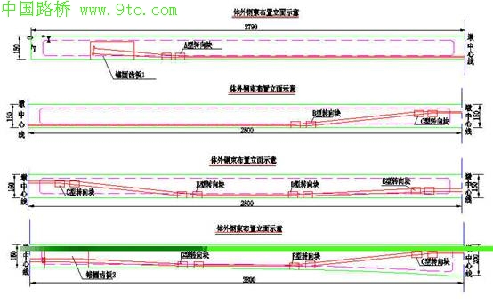 本桥加固工程现已全部竣工,加固施工完成后所作的荷载试验表明,箱梁的刚度和应力均得到了较大的改善和提高,取得了较为理想的加固效果。成功的将体外预应力运用于小半径曲线梁桥上,由此可见,用体外预应力结合灌注裂缝加固预应力混凝土连续弯箱梁,在现实中是可行的和有效的。