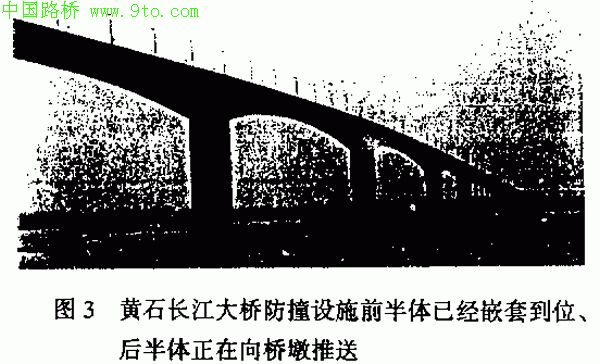 (3)预应力混凝土的连续刚构桥面因桥墩损坏可能造成桥梁整体破坏,事故后果特别严重。但是在黄石大桥上采取防撞措施也存在着重大的困难和受到严格的限制,主要是: