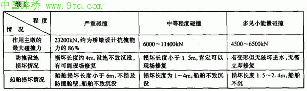 三碰撞程度分级以及防撞设施的防撞功能分级基本上包括并满足了大桥建设单位所考虑的