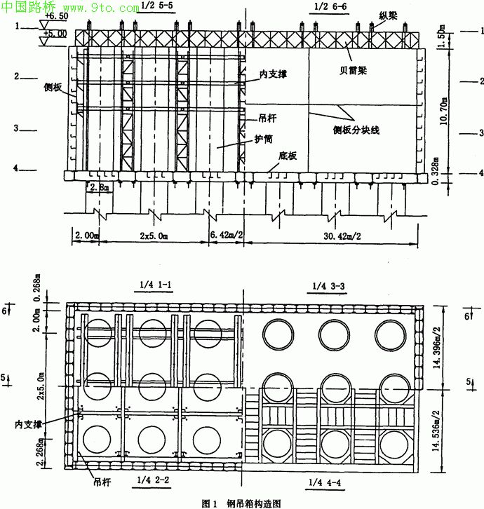 ④吊箱支吊系统和底板一样,以承受竖向荷载为主,受力验算亦与底板计算一起完成。