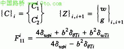 对于图1(a)所示具有n片板梁的桥,设其在沿着由外商载确定的、垂直于桥中轴线的根截面上具有n十1个铰接点,且第 i个饺点的竖向位移和竖直剪力分别为wi和gi,其所构成的列阵{Z}i称为该结点的状态列阵,即