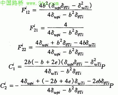 --分别为弯曲柔度系数、扭转柔度系数及弯曲扭转耦合柔度系数, 且有δθpi=δwTi它们分别表示单位力(P或T)作用于i号斜板梁跨度内yi截面中线处,在该处产生的烧度或转角其各值,可由结构力学求位移的方法求得;