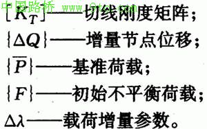 这种表达方式概念明确,适合一般荷载较为明确的结构分析。但由于桥梁结构初始力构成比较复杂,进行结构非线性加载时,仅有部分初始力作为增量荷载,很难用显式P0表达所有的初始力,因此,拱肋稳定安全系数采用第二种表达方式: