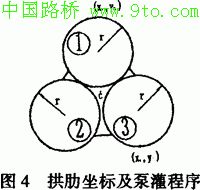 对大桥施工中可能出现的各种典型工况进行了验算,即空钢管状态,以及按图4之1→2→3的顺序泵灌混凝土等四种工况。管1泵灌之混凝土成强后,再泵灌2管及3管;泵灌2,3管时,将对拱肋作抗扭计算。