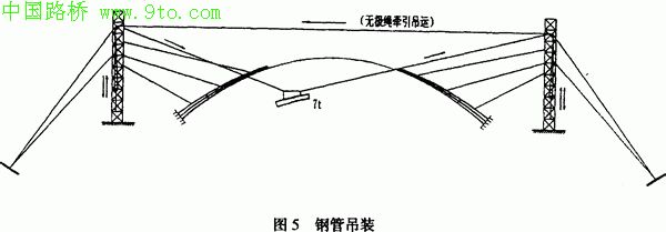 本桥主跨拱肋的施工,特点是拱肋钢管的焊接和无极绳运送,以及横梁的'荡提法"吊装。