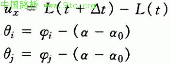 图1表示了平面梁单元在整体坐标系(OXY)下从t到t十Δt时刻的变形情况。定义随转坐标系(oxy)的原点固定在单元的一端(i端),x轴始终保持沿i→j的直线方向。可见,在随转坐标系中平面梁单元的自由度减少为三个(uxθiθj),并有如下的关系式