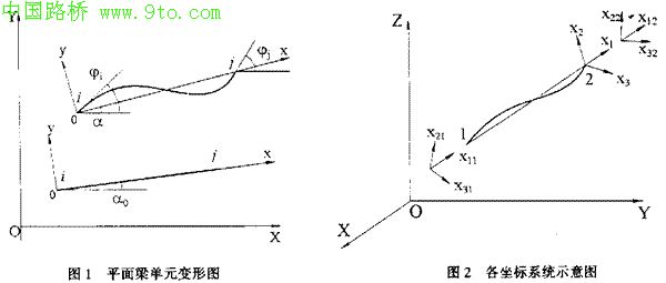 工程上很早就开始使用拖动坐标系来求解大跨度桥梁结构的大挠度问题,本文则把它应用到单元内力增量的计算中。从实质上说,这里的拖动坐标系与上面提到的随转坐标系没有区别。因此,在理论方法上,目前文中的方法可以归类到CR-UL法。但由于本文重点不在于详细介绍这种方法的理论体系,所以论述中均不再使用该名词。本文的目的主要是通过简化复杂的几何非线性分析方法,推广该方法在实际工程中的应用。