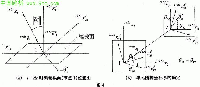 式中,L(t)和L(t十Δt)分别为 t和t十Δt时刻梁单元的直线长度。