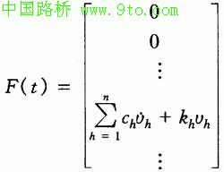 式(l)中X(t)为MDOF结构相对于地面的动力位移,M,C,K,R分别为MDOF结构的质量矩阵、阻尼矩阵几度矩阵和地震波输入方向矩阵。其中F(t)为: