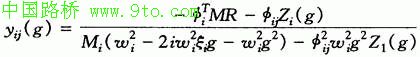 由于Ms,Cs,Ks仅在第一行、第一列和对角线上有非零元素,第i个振型的广义坐标η的振幅响应yij(w)为y(w)的第一个元素,可采用克莱姆规则求得,经过数学整理,yij(w)最终可变换为: