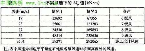 表2给出了6级风以上至施工设计风速各级风速时两种情况下的平转力矩,小于6级风时的平转力矩可根据风速的平方比例关系求得。