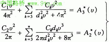 要进行抖振时程分析就必须首先模拟作用在桥梁上的脉动风速时程。本文采用经作者改进的谐波合成系列中的一种方法,大大提高了模拟效率,为在后文进行颤振时程分析中不断变换风速计算节约了时间。作用在大跨度桥梁上脉动风速可视为一维多变量随机过程。众所周知,用谐波合成法模拟一维多变量随机过程需要计算互谱密度矩阵的Cholesky分解。该分解通常采用迭代法求借,计算最大,常常影响模拟的规模的效率。本文作者利用桥梁上各点的互谱密度近似相等的特点,导出了显式的分解公式,并且采用了FFT技术,从而极大地提高了模拟效率。经过改进后的谐波合成法如下[3]: