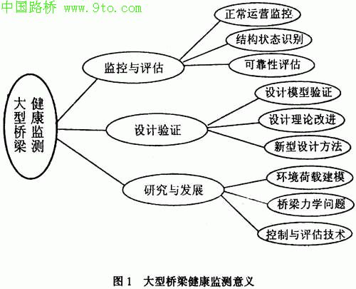 综上所述,大型桥梁健康监测不只是传统的桥梁检测加结构评估新技术,而是被赋予了结构监控与评估、设计验证和研究与发展三方面的意义(图1)。