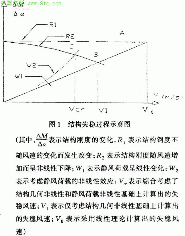由于以上两种公式均未考虑结构非线性和静风荷载非线性因素的影响,因此计算出的静风临界风速一般会明显偏高,对结构而言是偏于不安全的。