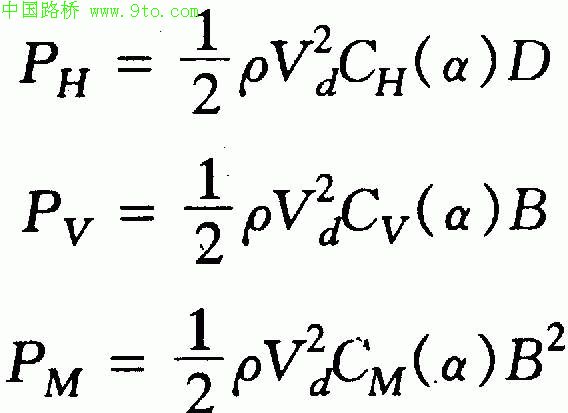 作用在主梁单位长度的静风荷载可分解为横向风荷载PH、竖向风荷载PV和扭转力矩M,具体表达式如下: