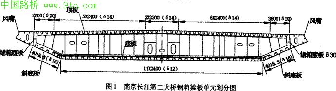 大跨度桥梁中,钢箱梁以制造质量稳定、跨度大、架设方便而经常采用。日本的多多罗大桥和国内的江阴长江大桥、海沧桥以及在建的南京长江第二大桥均采用钢箱梁。钢箱梁的制造由于钢板规划及运输等方面的原因,一般采用工厂、工地、桥位相结合的方式。板单元制造中,保证制造质量,提高制造效率是关键所在。本文以南京长江二桥的钢箱梁为例,介绍板单元构件的制造方法及控制要点。