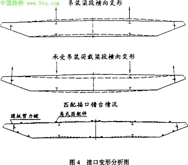 6mm)偏差,而且标高测点不在同一位置;运输及吊装影响等。为了保证主控点标高和桥轴线满足设计要求,在必保顶板匹配的前提下,底板的缝口可适当调整,但不大于15mm。