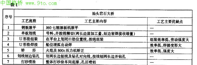 下面将1997年我厂生产制作汕头礐石大桥和1999年生产制作南京二桥的钢箱梁单元板块工艺作比较,两座桥结构和工艺基本类似。