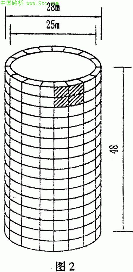 钢围堰高48m,外径28m,内径25m,壁厚1.5m。在钢围堰的内,外壁贴上 6mm厚的钢板,内、外壁间填充
