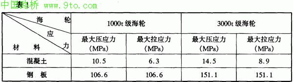 在3000t级海轮横桥向撞击力作用下,P=1900t,撞击接触面积A=8.7平方米;
