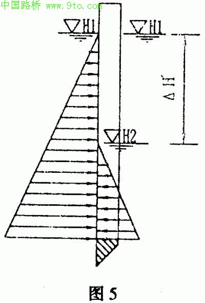 五、进行承台施工围堰内抽水时,围堰内外水位差的撞制计算