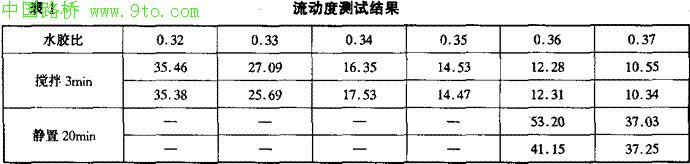 0.34~0.35之间的水泥浆的流动性符合规范要求;
