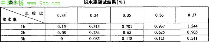 ④水胶比0.33~0.35的泌水率均小于2%。