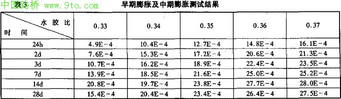 ①3h内的水泥浆的膨胀(即水泥浆凝结前的早期膨胀),因浆体与其表面的泡沫在逐步离析分层而无法测得。且当将装作表面的沁水和泡沫汲取后,浆体的体积无变化,这只是说明本方法未能测出其变化,但这不能说明其早期无膨胀;