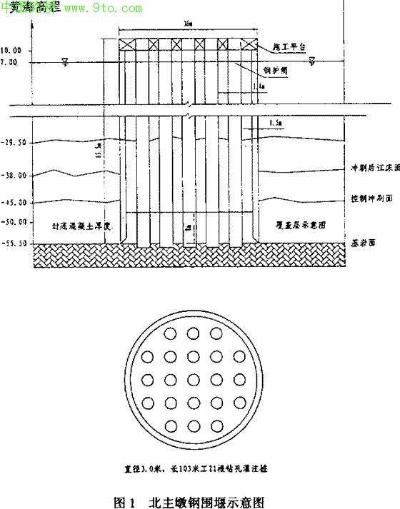 l~ 1.2MPa,钻孔灌注桩按摩擦桩设计。钢围堰从