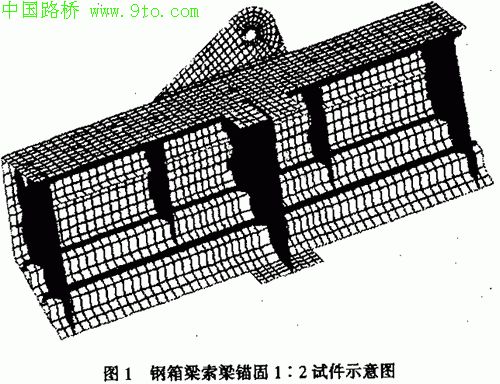 在索梁锚固区域,结构复杂,受力集中,是控制设计的关键部位。掌握斜拉索的锚头以及与钢箱梁连接附近的应力分布情况是十分重要的,然而目前的理论分析和计算能力都难于反映真实的应力分布情况,为此,有必要进行试验研究。