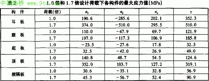 1.0倍和1.7倍设计荷载下各构件的最大应力值见表2。