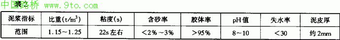1.15~1.25之间,稠度也相应增大,有利于浮起沉渣,增强泥浆护壁的作用,减少塌孔的危险。但泥浆的比重越大,则对水下混凝土灌注愈不利,二者是一个辩证的关系,要视具体情况而定。