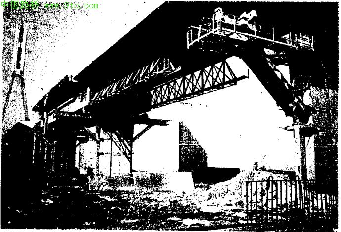 当第一跨箱梁施工时,该支架后支点用两个600t千斤顶支于后墩牛腿上.而前支点则用两个800t千斤顶支于前墩牛腿上。
